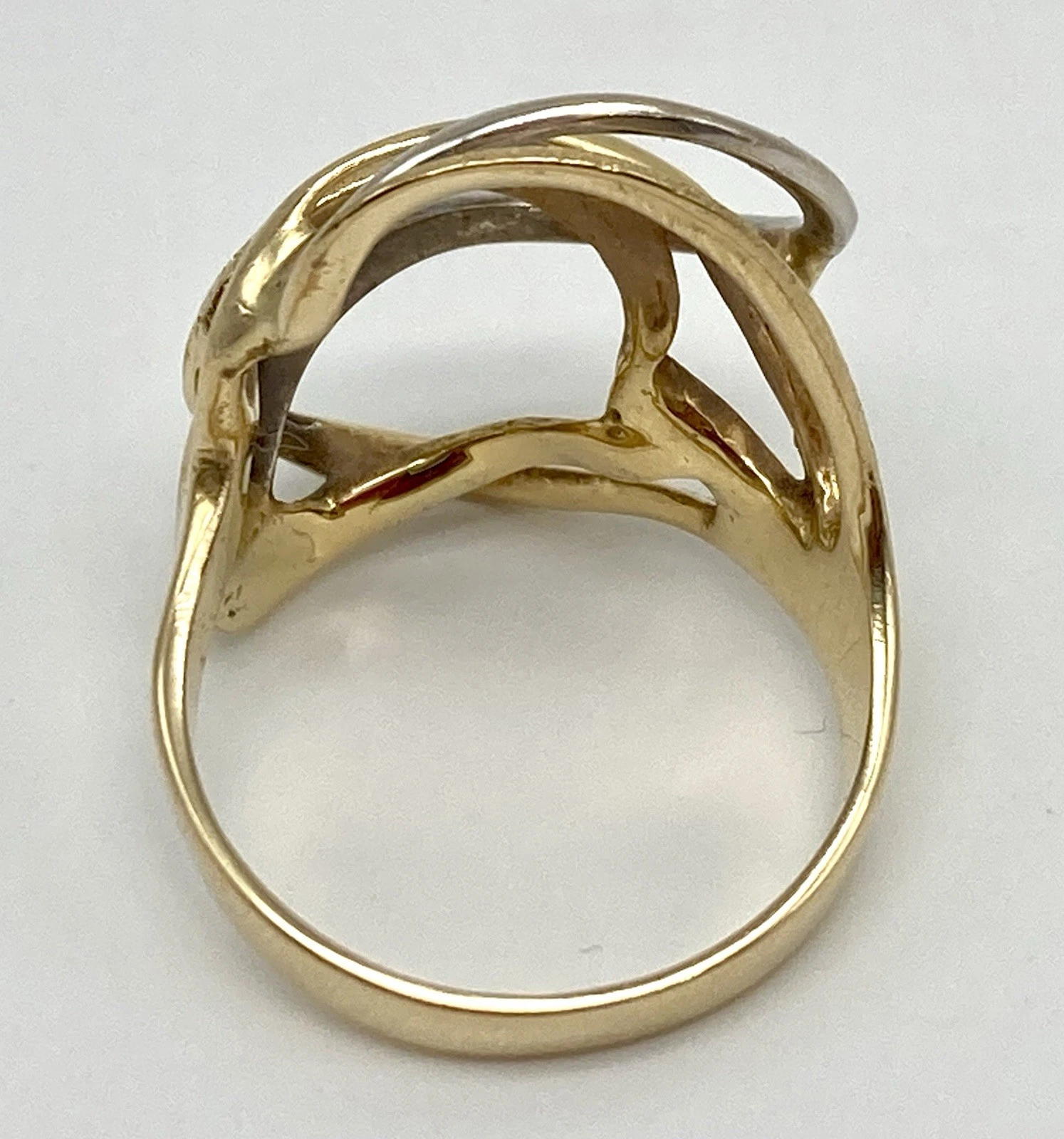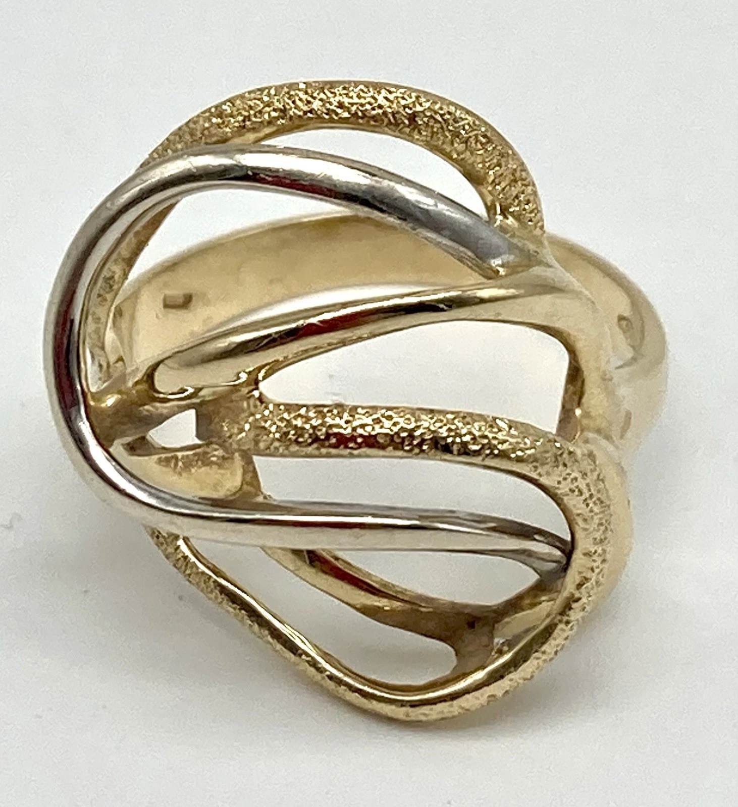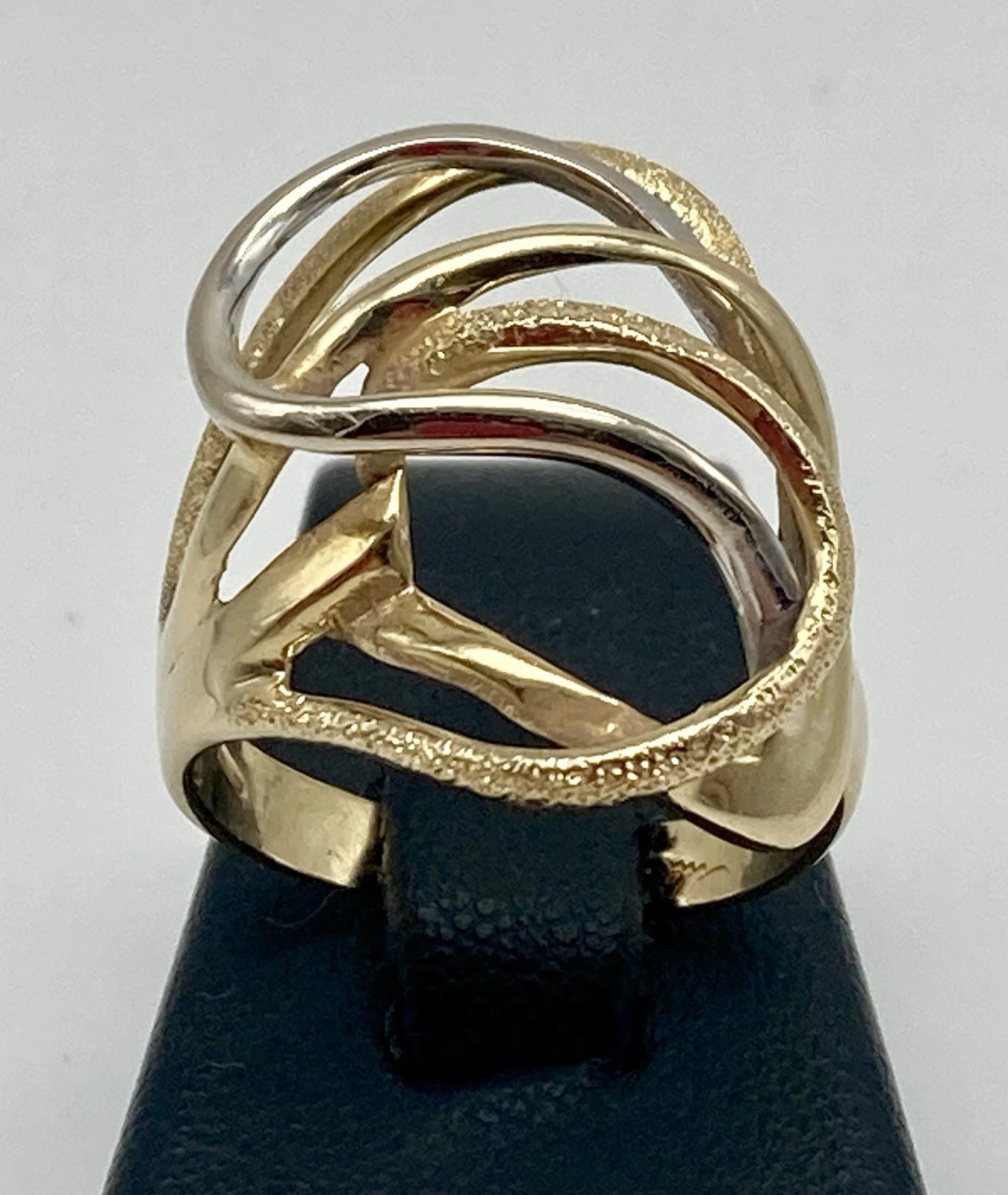 ART. 1160 “ANELLO 2 COLORI” In oro giallo 18 kt o 750 peso gr. 8,10 stile design con righe lisce e diamantate altezza frontale 23,85 mm larghezza frontale 19,60 diametro interno anello 18,80 mm misura anello 19,00