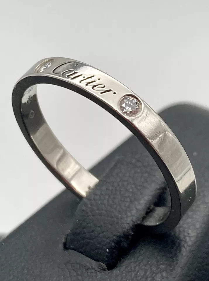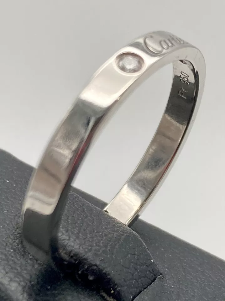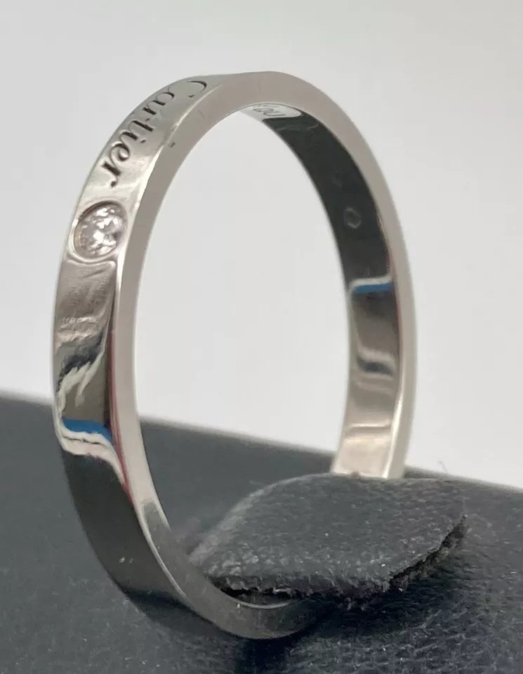 ART. 1090 “ANELLO PLATINO ” “ Fede C De Cartier” in Platino 950/1000 peso gr. 5,90 2 diamanti taglio brillante colore H (+/- 1) purezza VS (+/- 1) per un totale di 0,06 ct. (+/- 0,01) diametro interno anello 20,40 mm misura anello 24,5