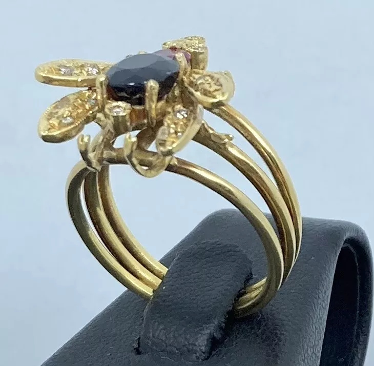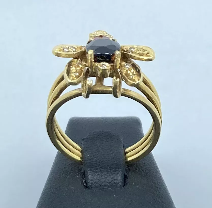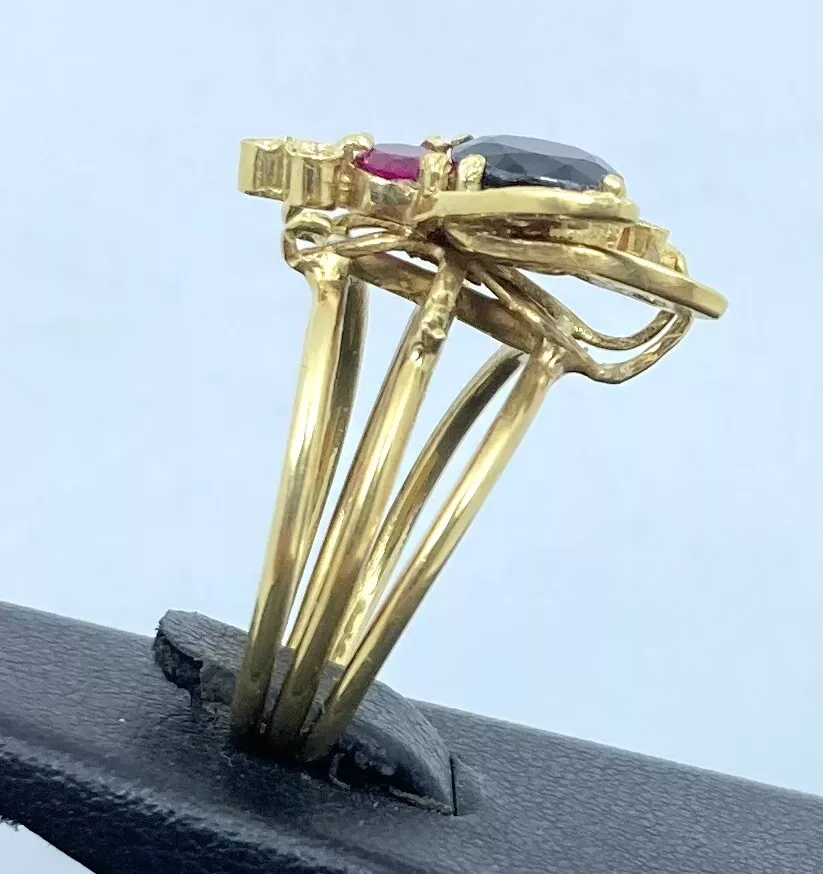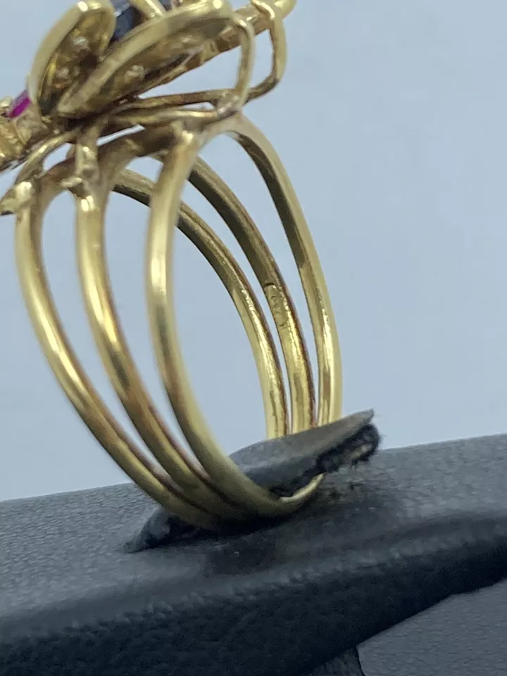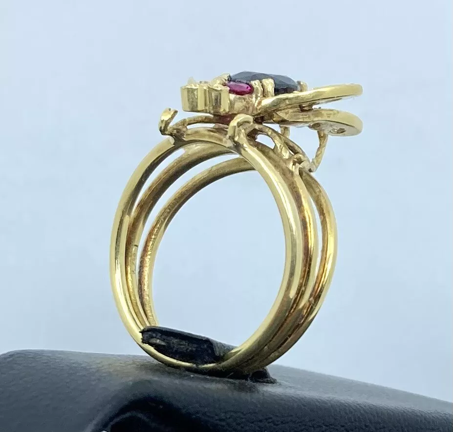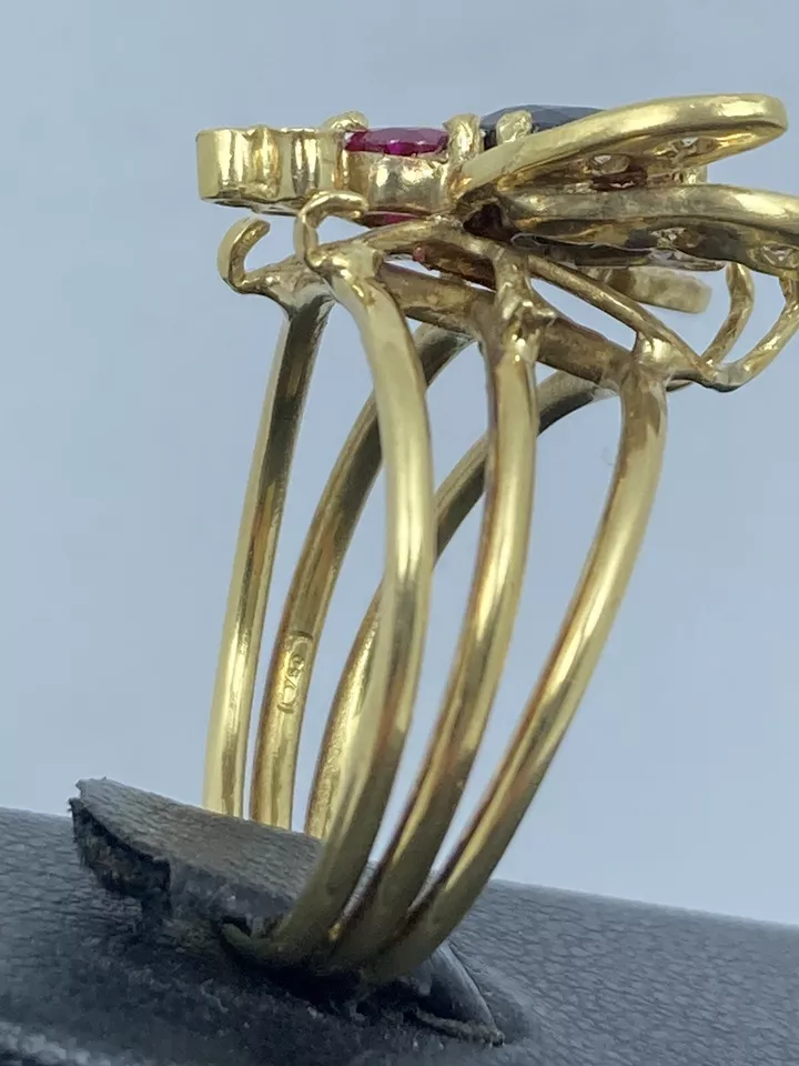 Anello in Oro con Zaffiri, Rubini e Diamanti a Forma di Insetto