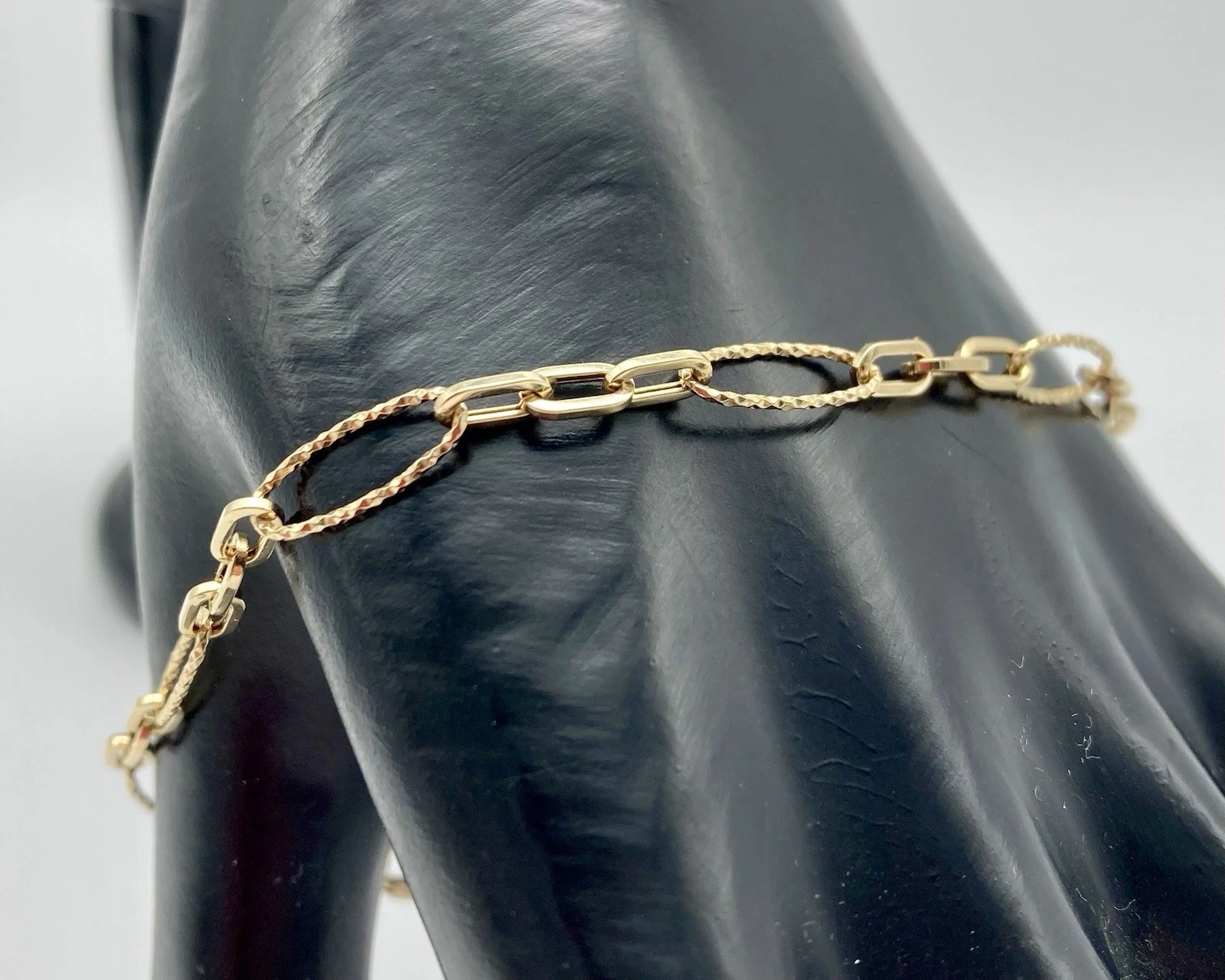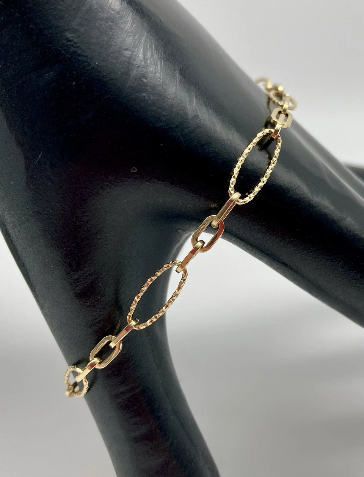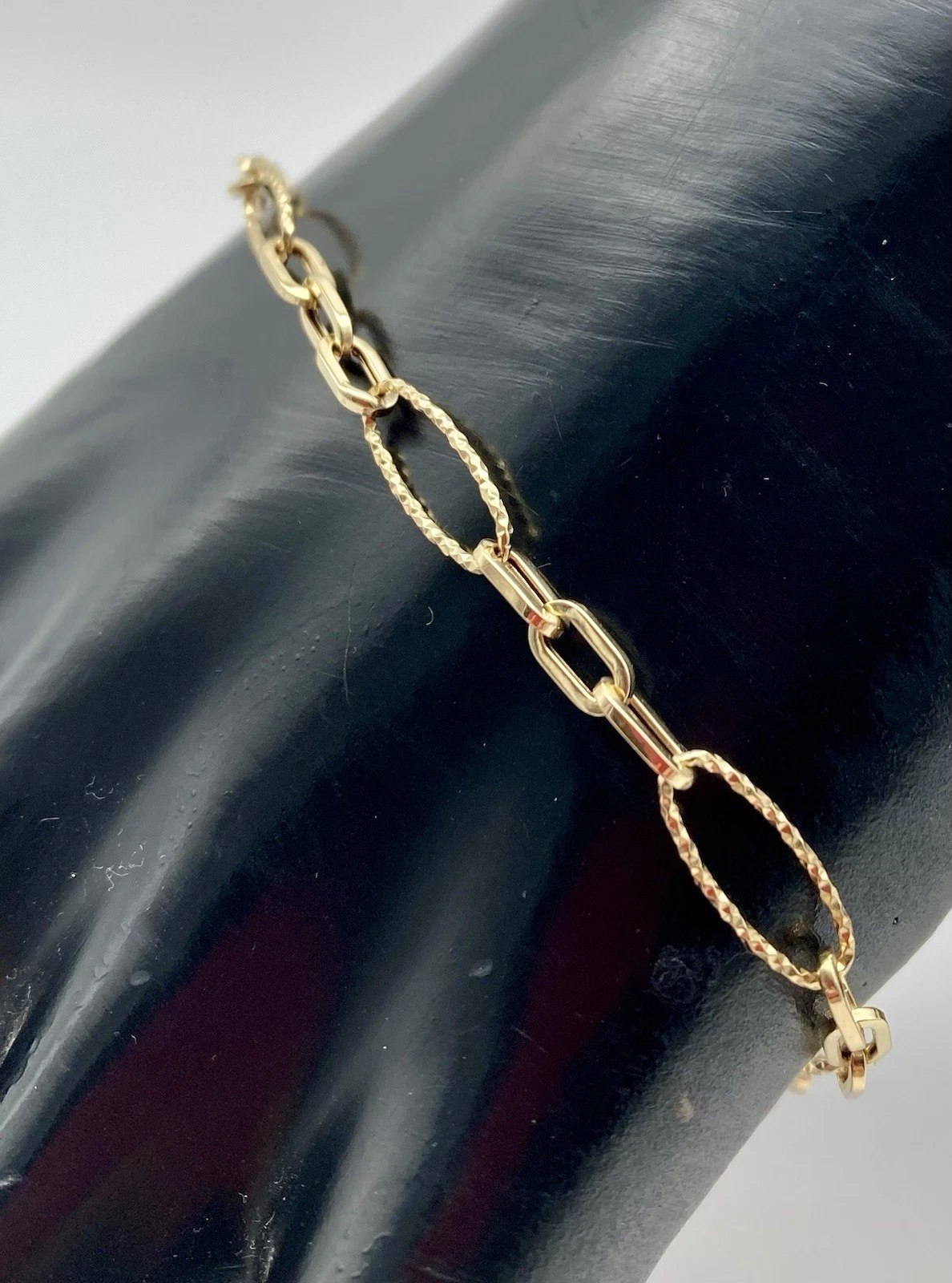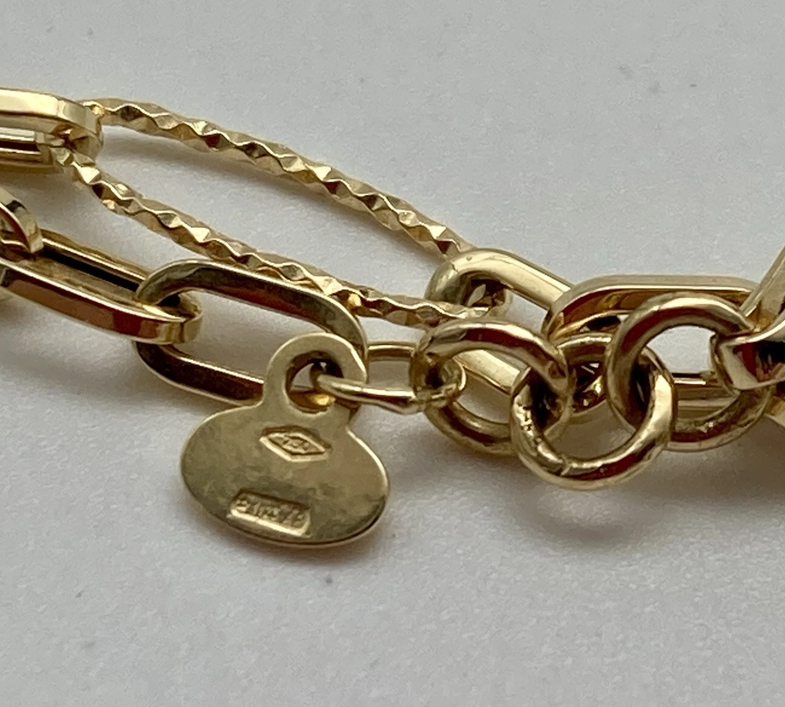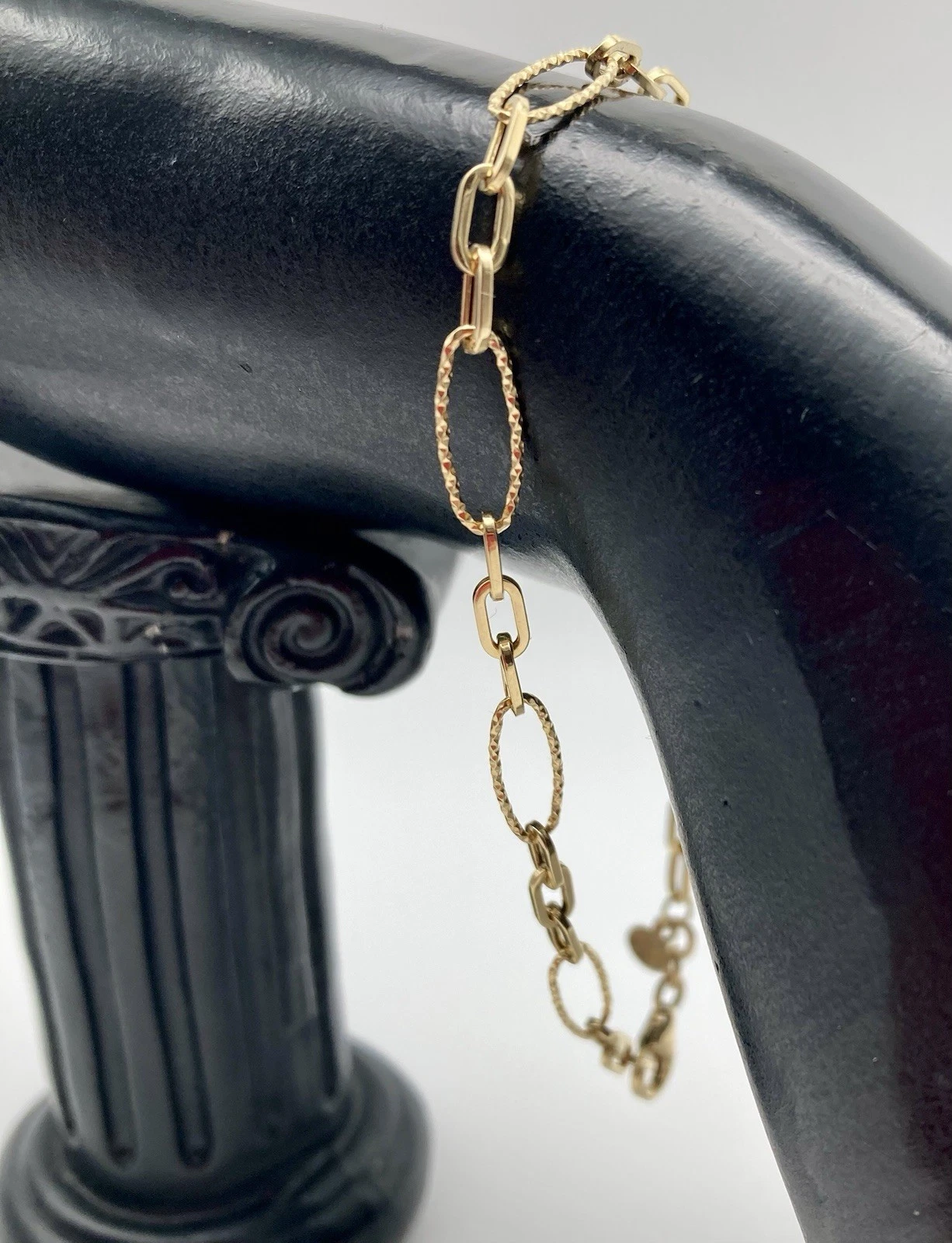 ART. 1149 “BRACCIALE IL GIGLIO” In oro giallo 18 kt o 750 peso gr. 2,90 maglia ad anelli ovali lisci e zigrinati lunghezza bracciale 20,50 cm larghezza maglia 4,90 mm adatto a polsi M
