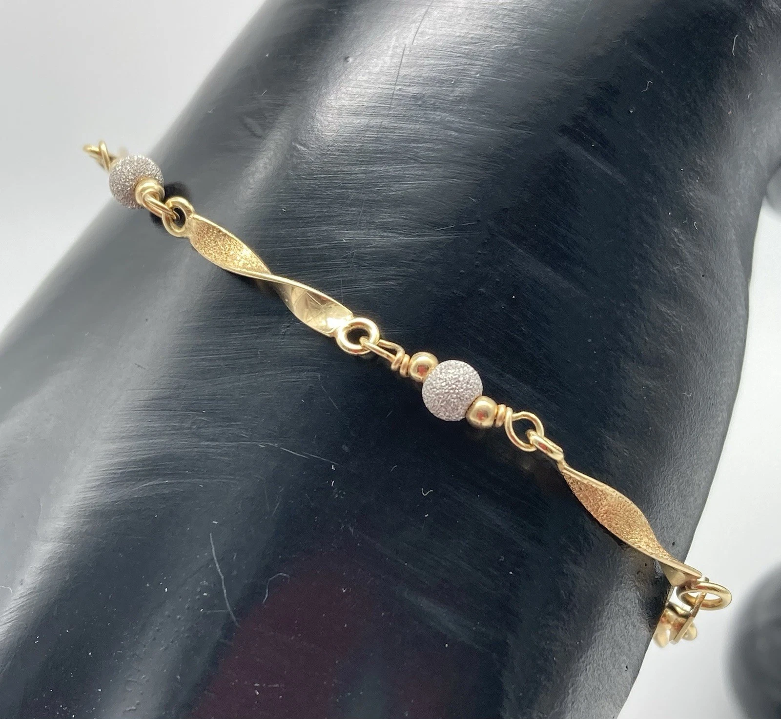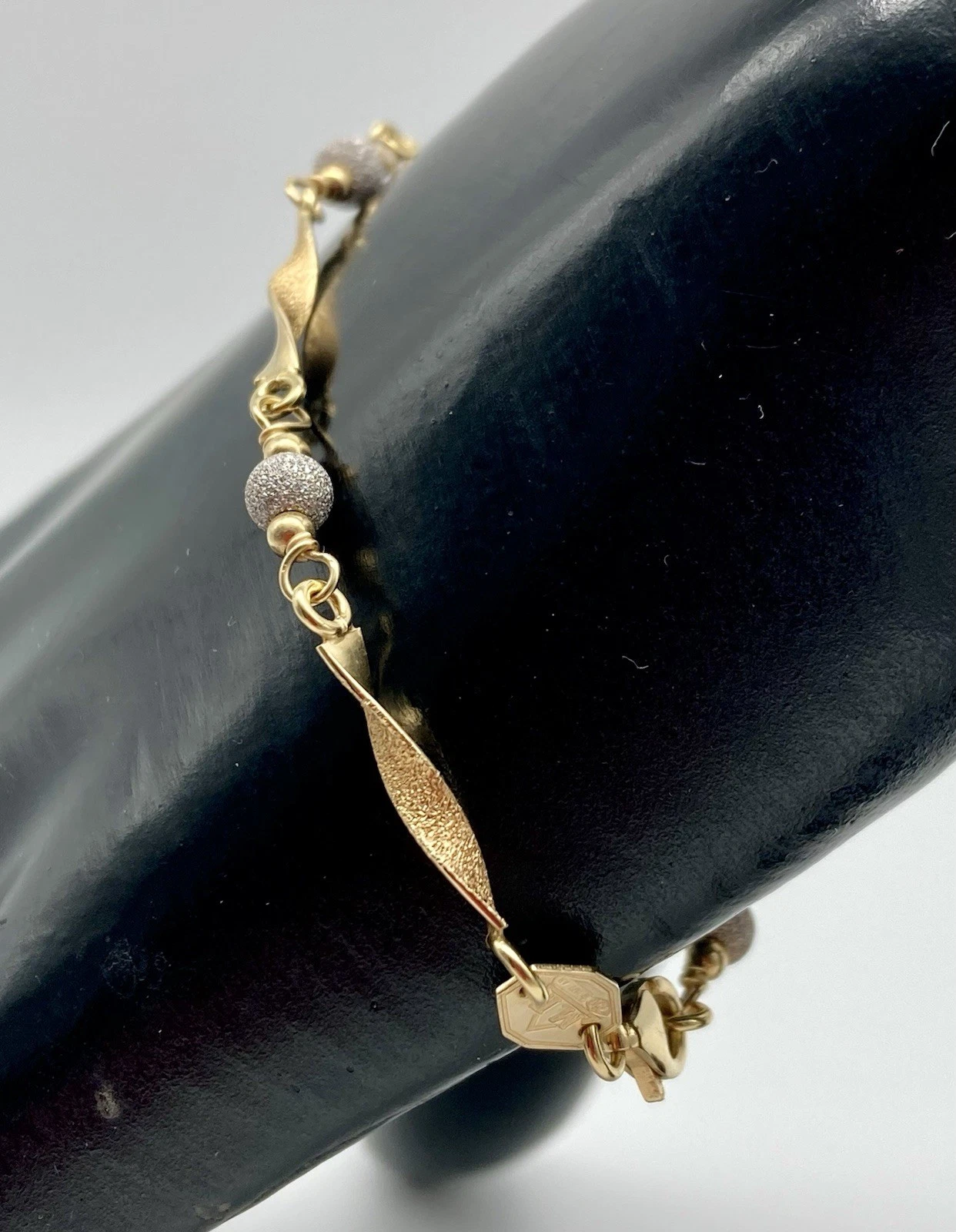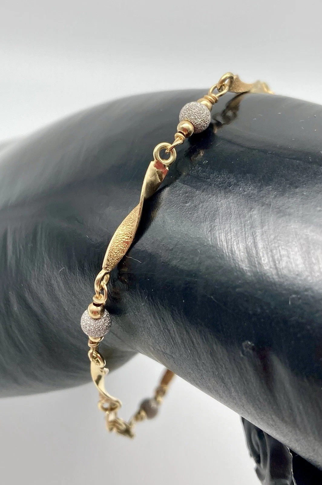 ART. SC15 “BRACCIALE PALLINI” In oro giallo e bianco 18 kt o 750 peso gr. 4,50 maglia elicoidale diamantata in oro giallo unita da piccoli anelli a sfere diamantate in oro bianco lunghezza bracciale 18,50 cm larghezza maglia 4,10 mm adatto a palso S