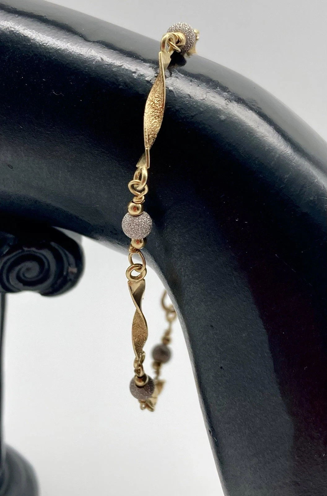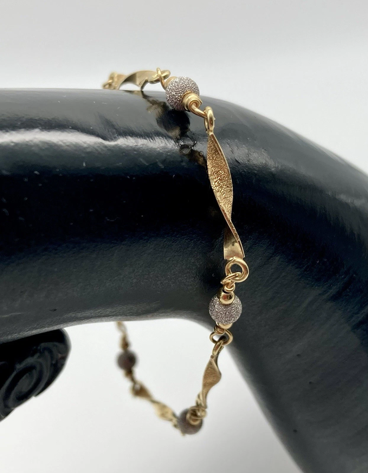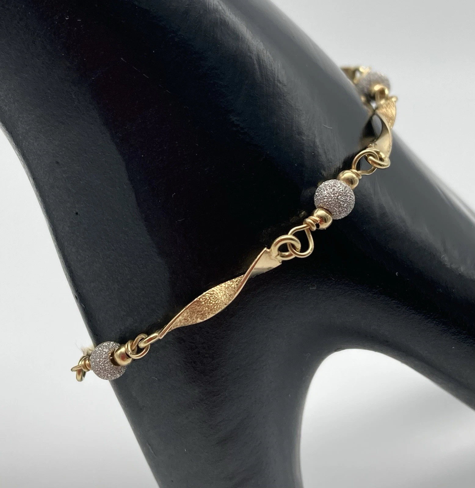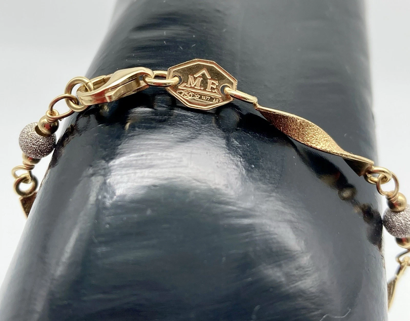 ART. SC15 “BRACCIALE PALLINI” In oro giallo e bianco 18 kt o 750 peso gr. 4,50 maglia elicoidale diamantata in oro giallo unita da piccoli anelli a sfere diamantate in oro bianco lunghezza bracciale 18,50 cm larghezza maglia 4,10 mm adatto a palso S