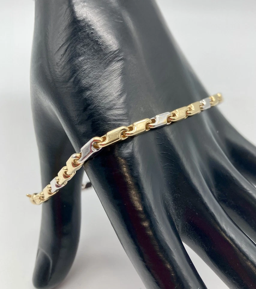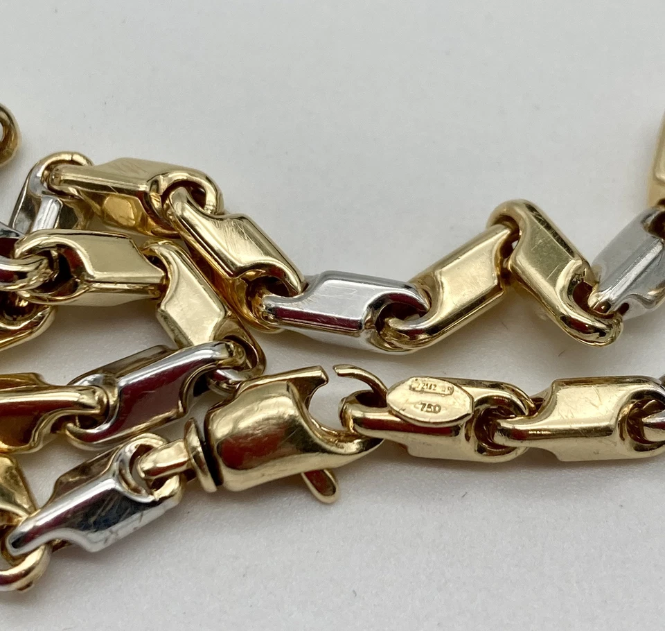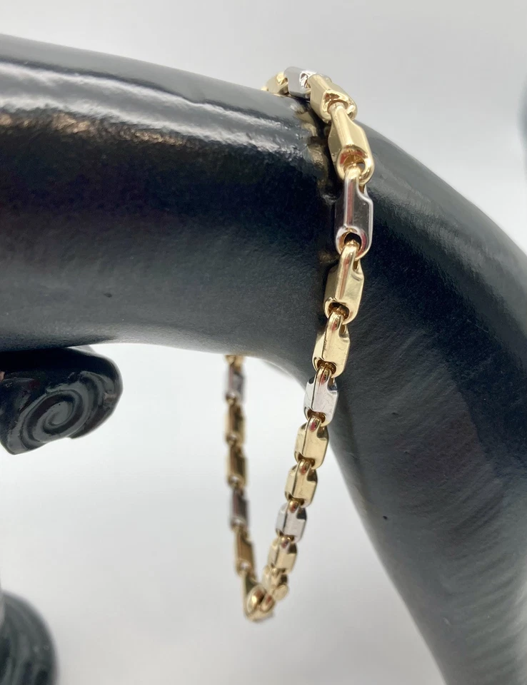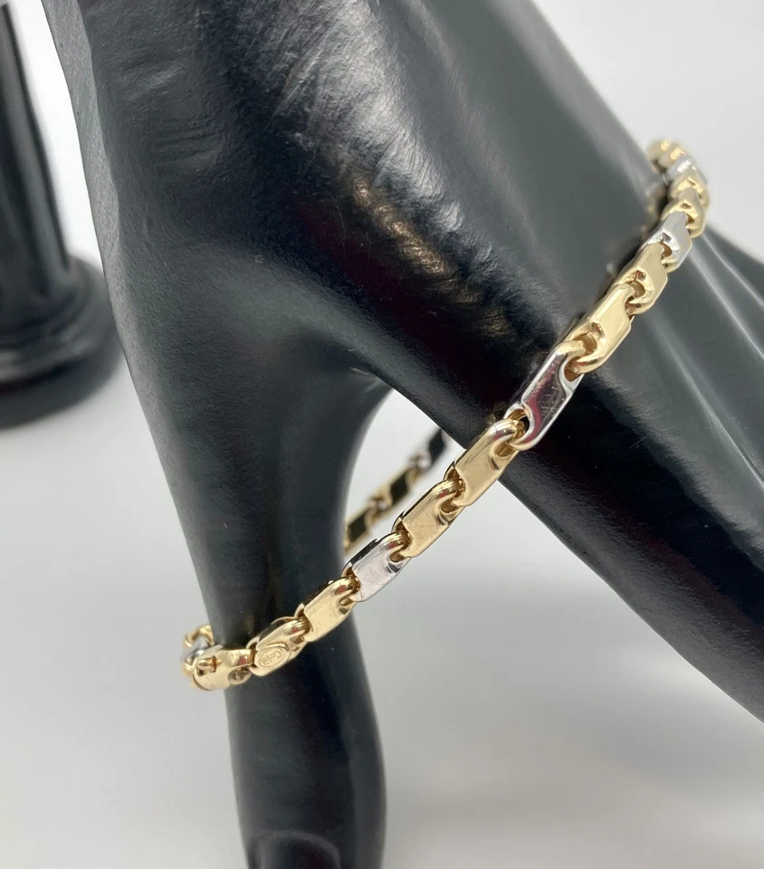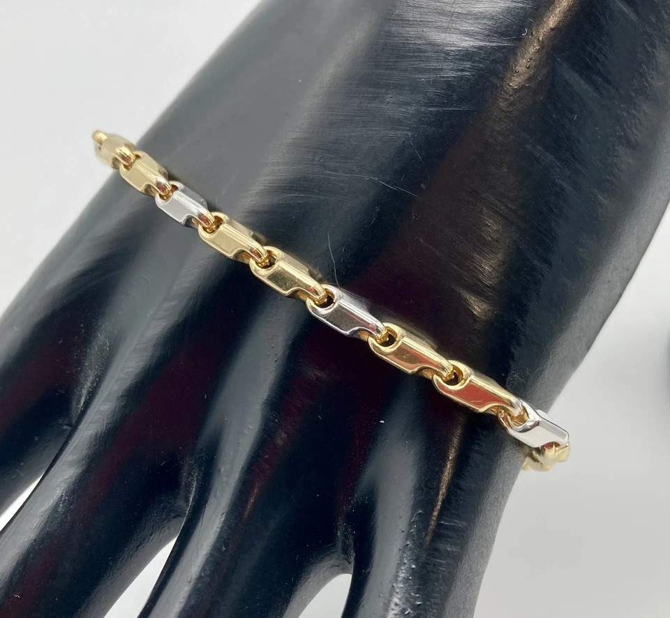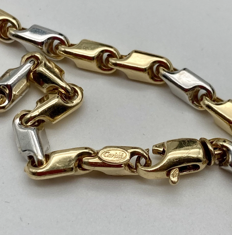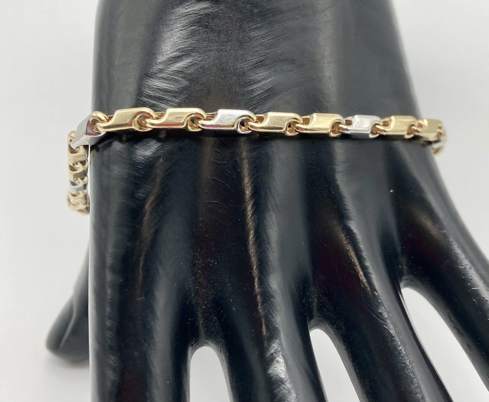 ART. 1122 “BRACCIALE 2 COLORI” Bracciale Cerini In oro giallo e bianco 18 kt o 750 peso gr. 6,00 maglia Design larghezza maglia 3,30 mm lunghezza bracciale 22,00 cm adatto a polso M/L