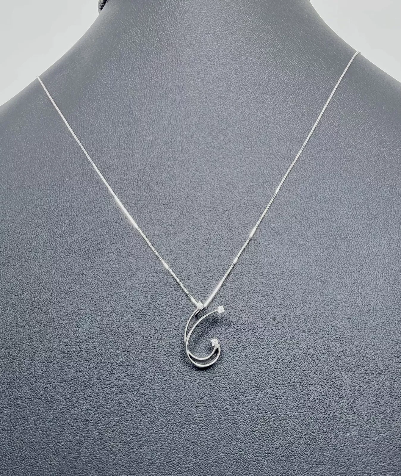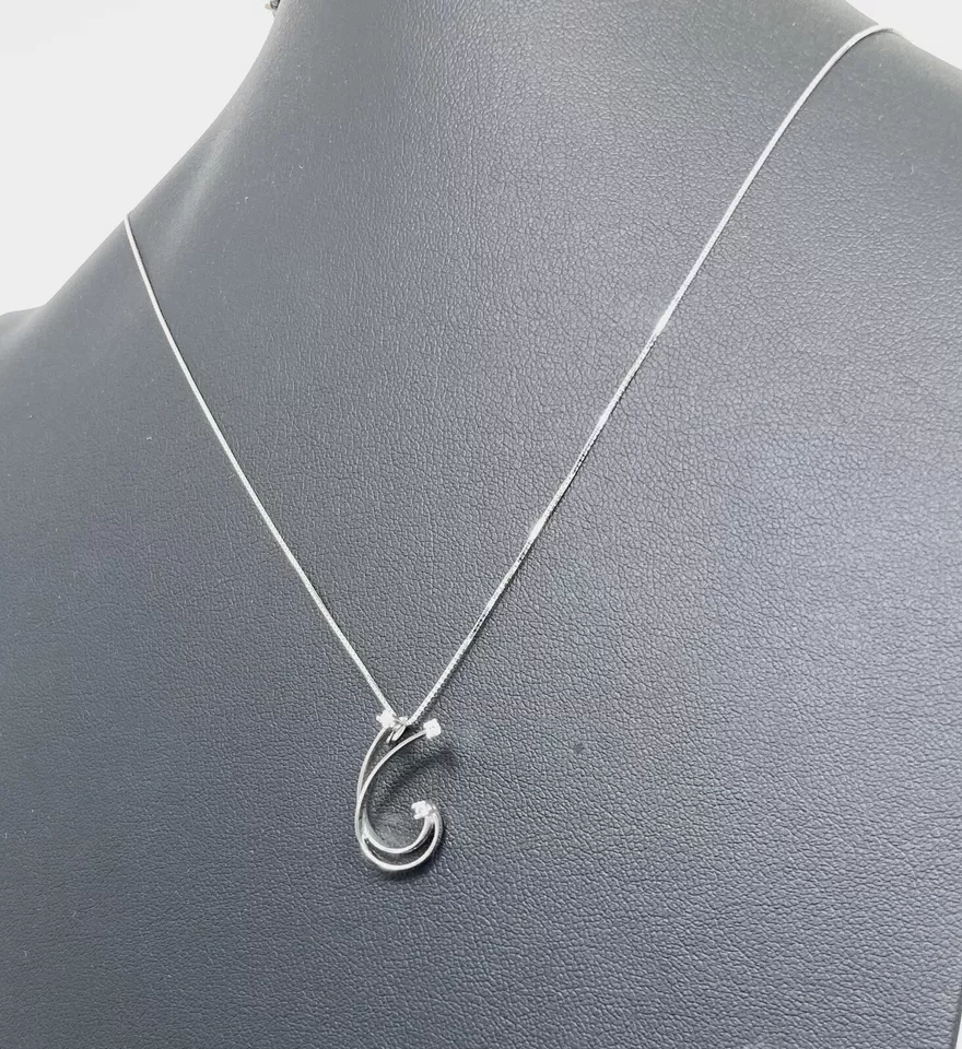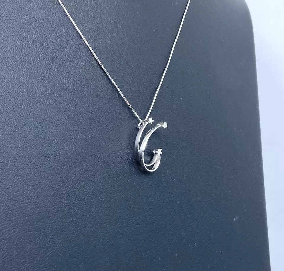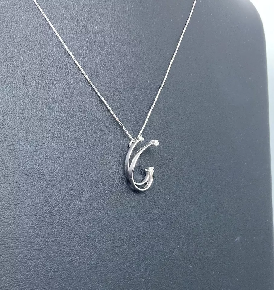 ART. 1043 “COLLANA RECARLO” in oro bianco 18 kt o 750 peso gr. 3,30 (oro e diamanti) maglia veneziana lunghezza collana regolabile 35,50 – 38,00 – 40,50 – 43,00 ciondolo stilizzato 3 diamanti taglio brillante per un tot di 0,05 ct (+/- 0,01) colore H (+/- 1 ) purezza VS (+/- 1 )